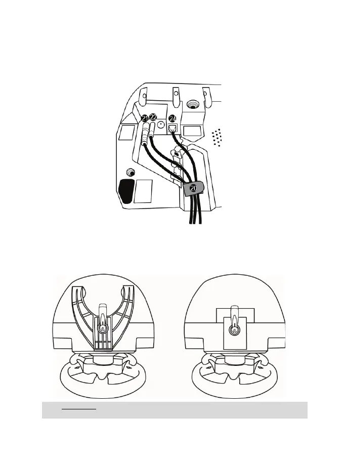 Nezabudnite dodržať cesty pre rôzne káble a pripevnite káble pomocou držiaka kábla so suchým zipsom (20).