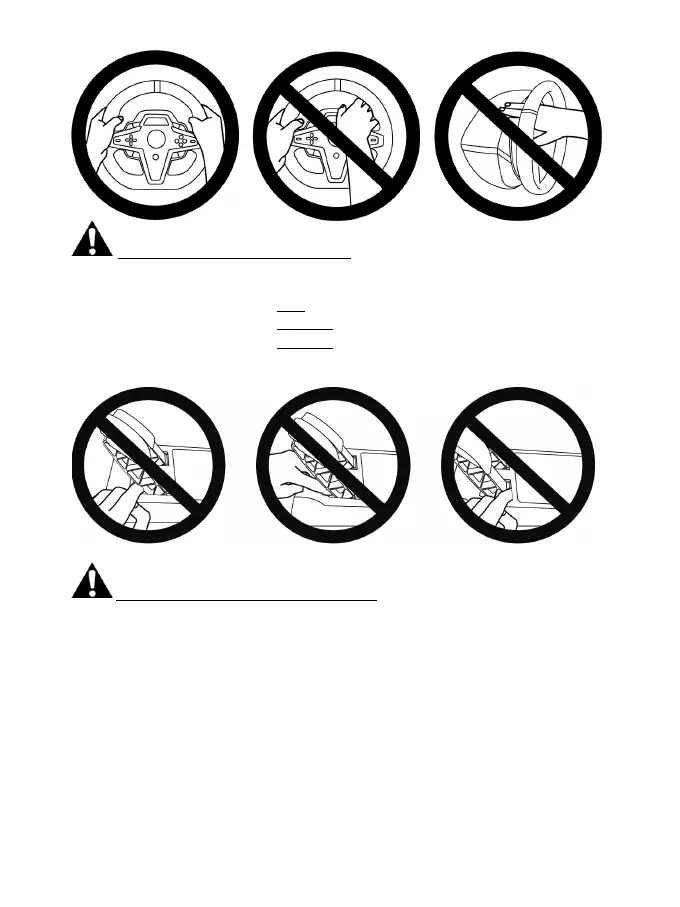 * 玩遊戲時,切勿將手指放在踏板前底座上或附近任何位置。
