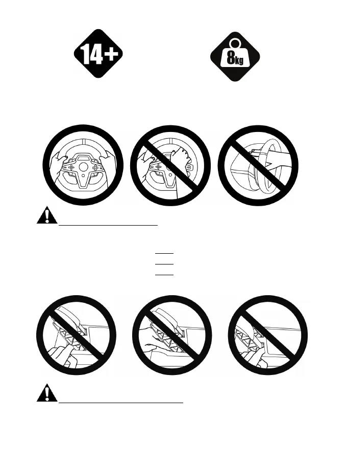 * 게임 중에 손가락을 절대로 페달 위에 또는 전면에 놓지 마십시오.