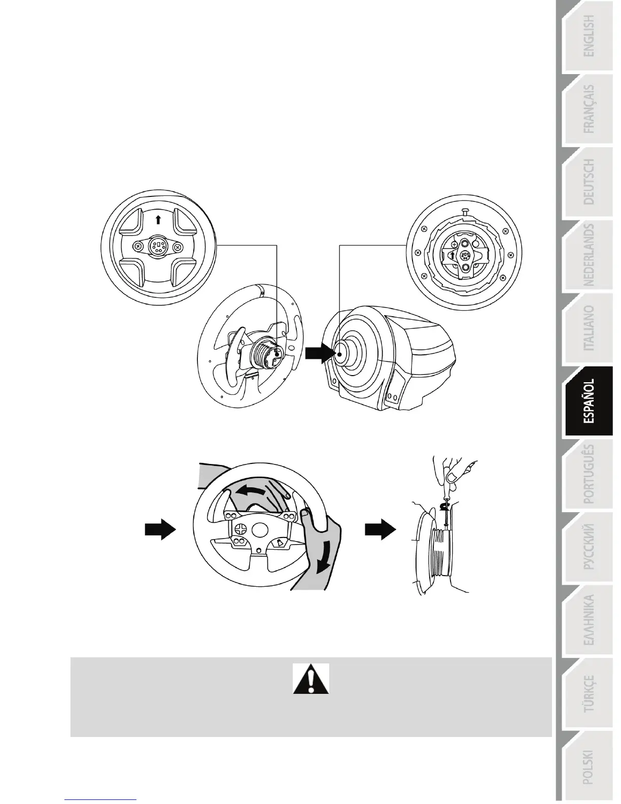 Una vez que hayas instalado el volante de carreras, gíralo 180° (cuando mires al volante, el logotipo de