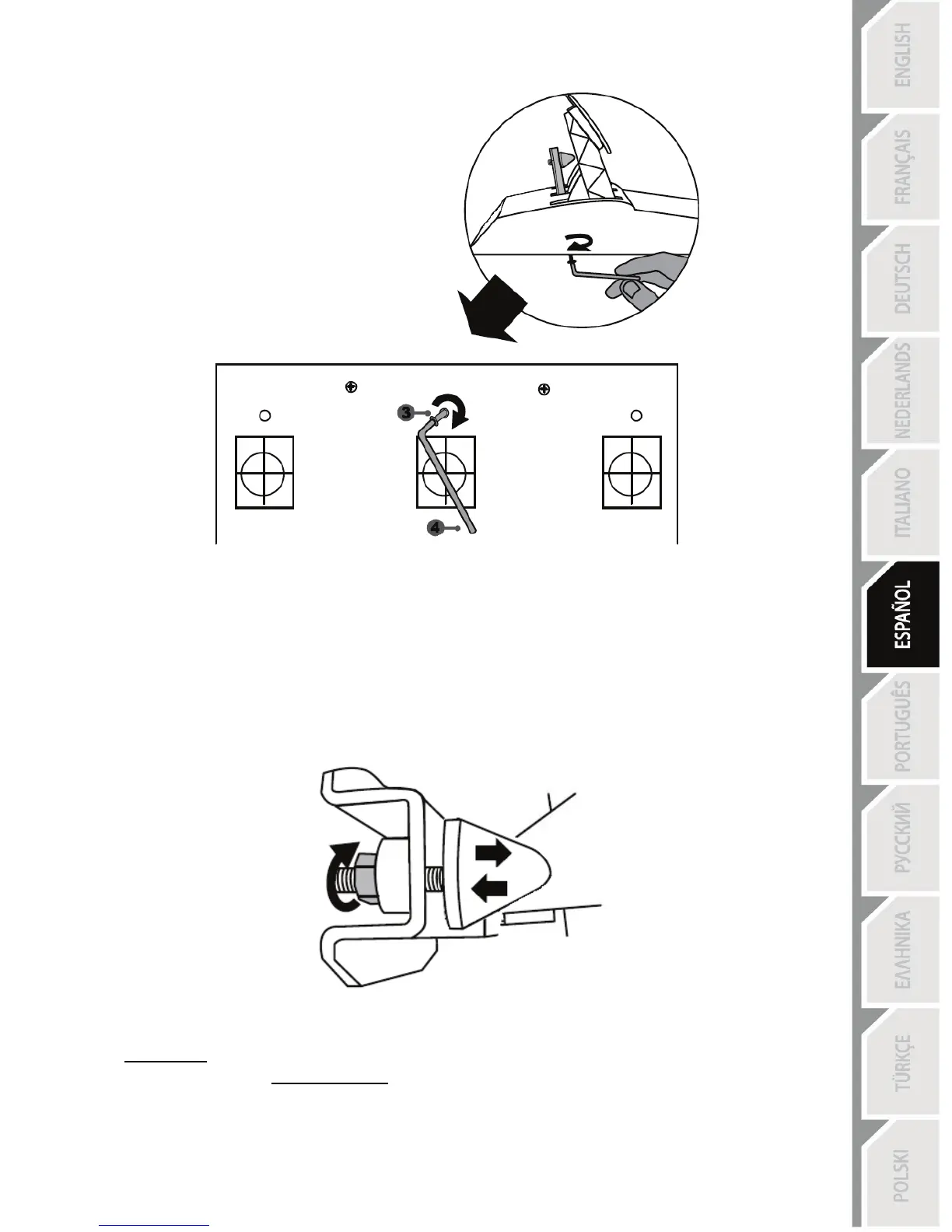 moviendo el tope cónico (2) más cerca de la parte trasera del brazo del pedal (si es necesario, usa