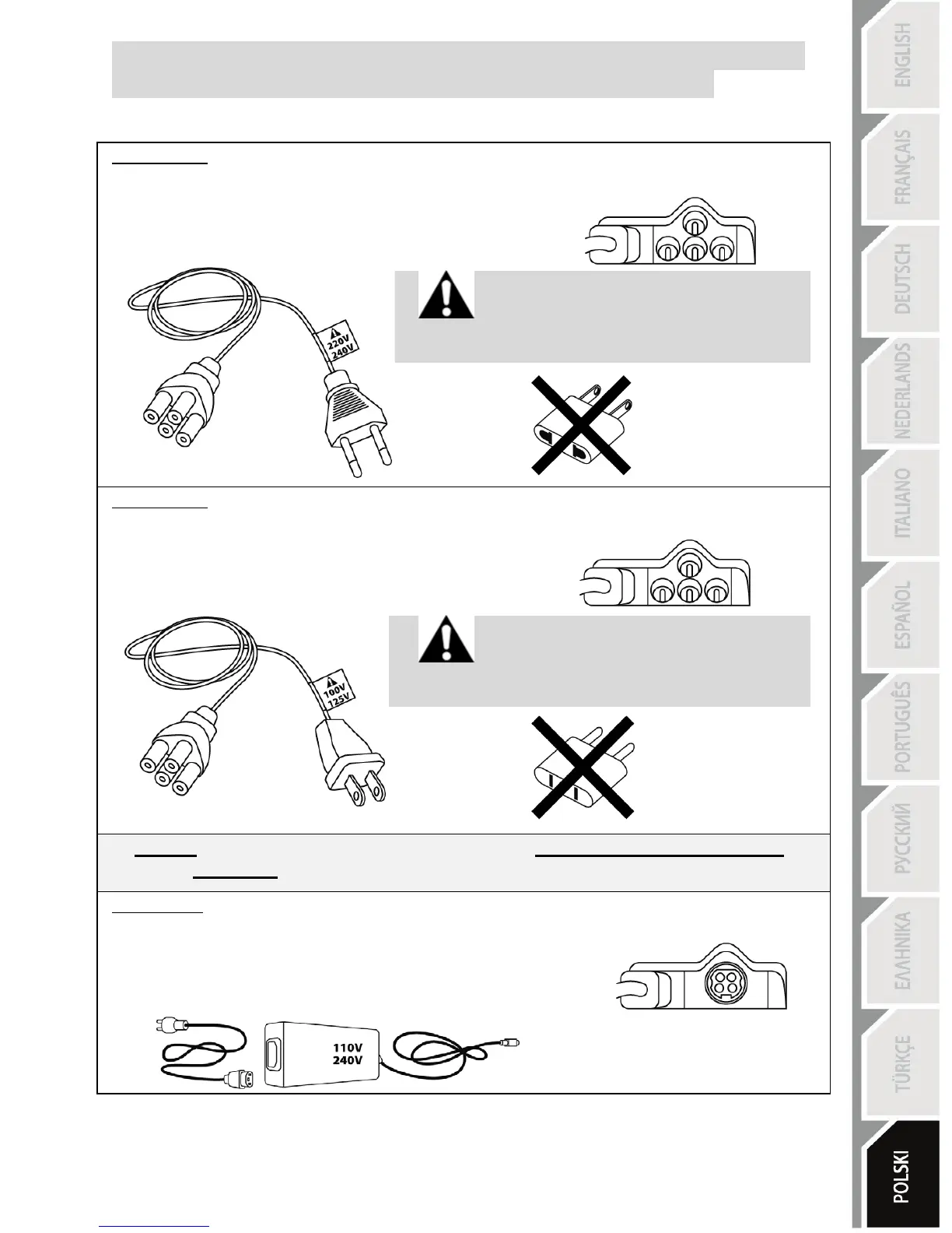 WAŻNE: jeśli nie wiesz, jakie napięcie jest stosowane w miejscu, w którym korzystasz z