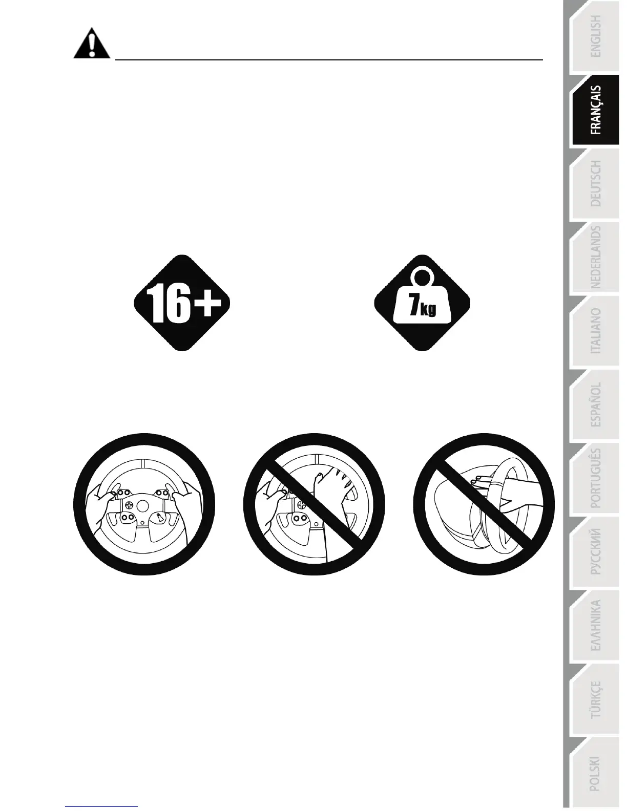 * Lors des phases de jeu, laissez toujours vos deux mains correctement positionnées sur le volant