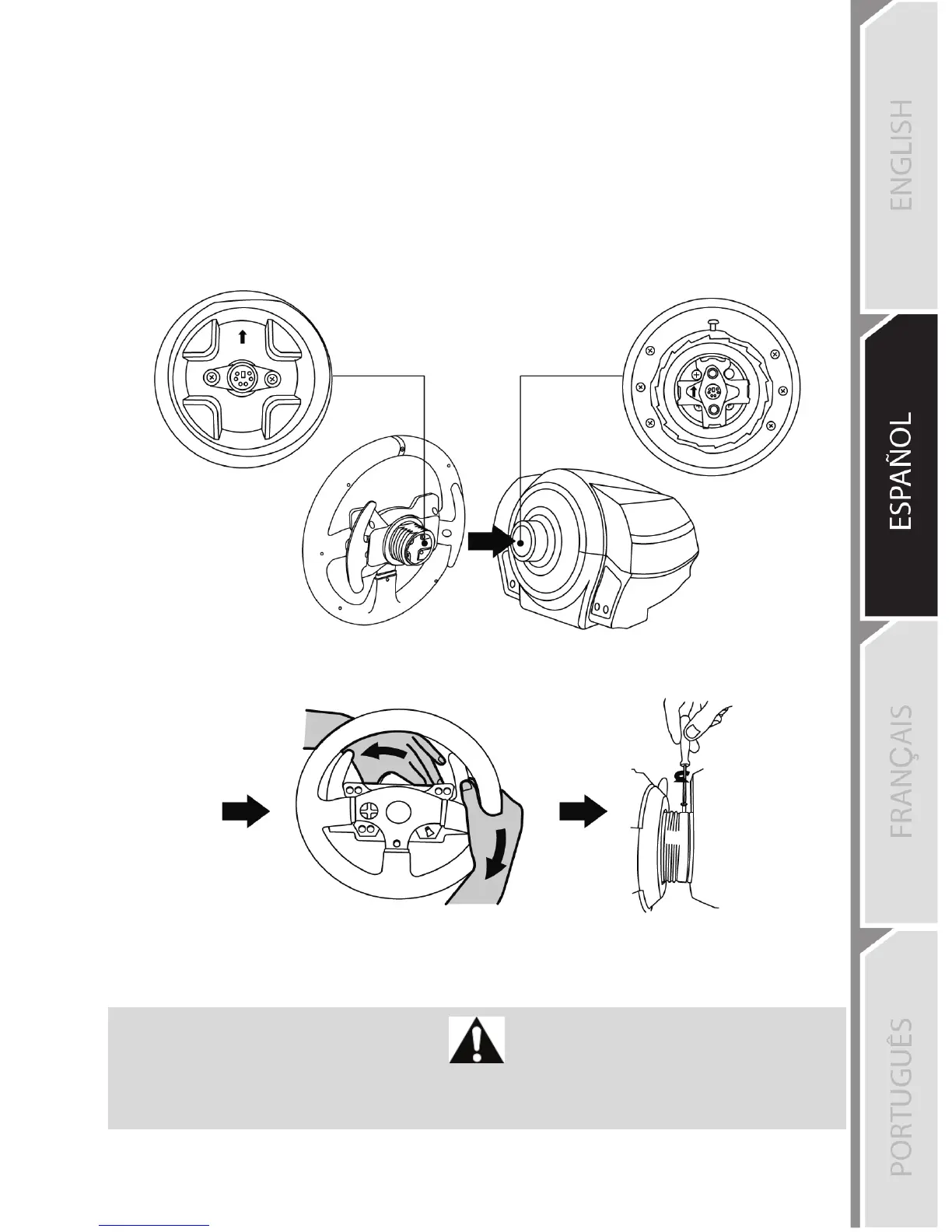 Una vez que hayas instalado el volante de carreras, gíralo 180° (cuando mires al volante, el logotipo de