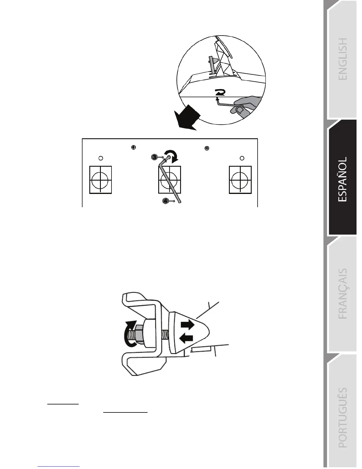 - Con la llave Allen de 2,5 mm incluida (4), fija la unidad con el tornillo de sujeción (3) y la rosca de