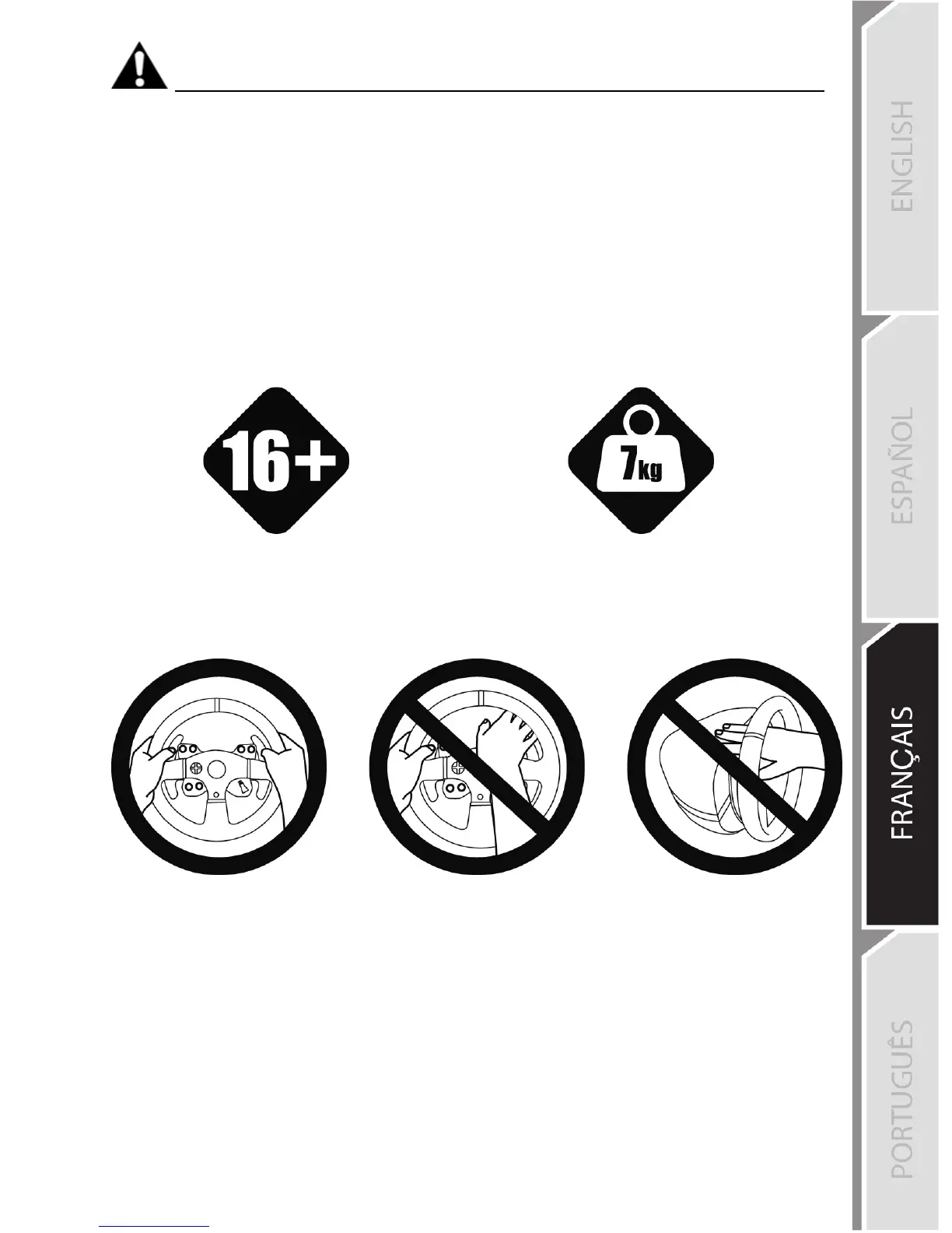 * Lors des phases de jeu, laissez toujours vos deux mains correctement positionnées sur le volant