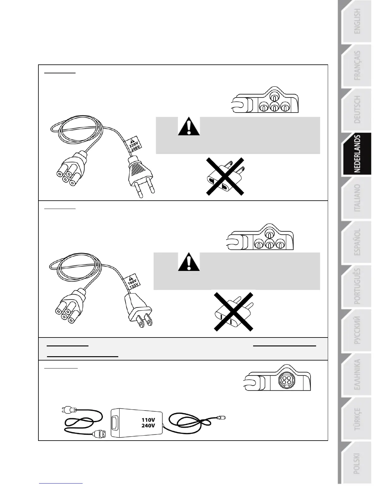 BELANGRIJK: als u niet weet welk voltage er op het stopcontact staat op de plek waar u het