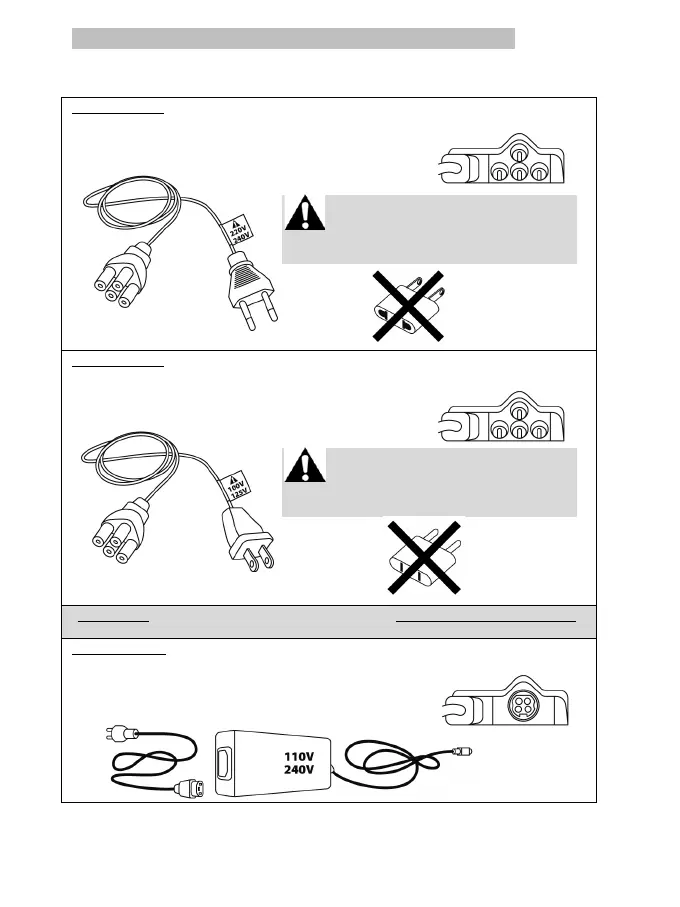 Ne jamais brancher le câble 220-240 V sur