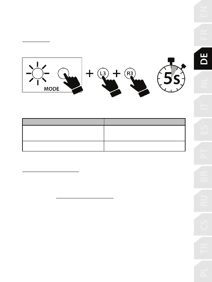Halten Sie die Tasten MODE + L3 + R3 (an der Basis des T300-Rennlenkrads) gleichzeitig fünf