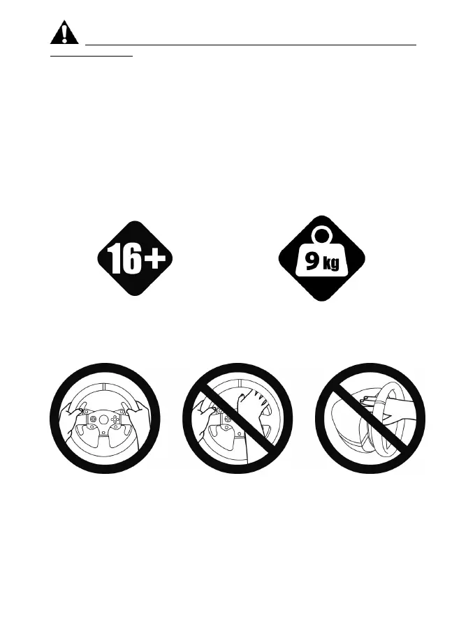 * Houd tijdens het gamen altijd twee handen in de juiste stand aan het stuur en laat het stuur nooit