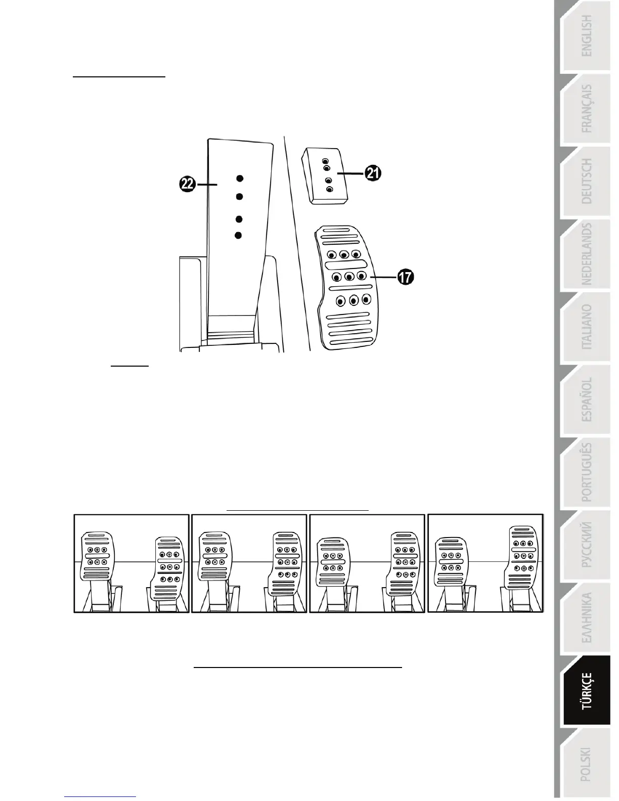 DİKKAT: Her türlü kalibrasyon sorununu önlemek için pedal setinde ayarlama