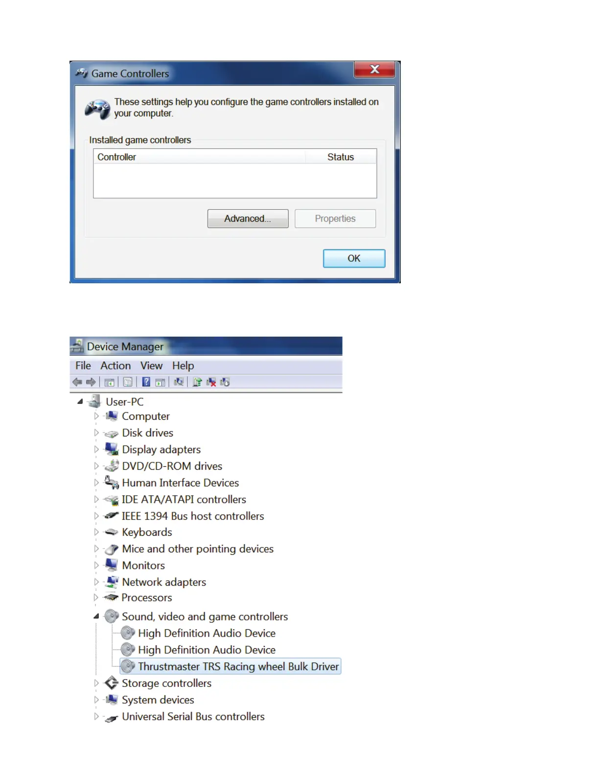 - Der Rennlenker wird im Gerätemanager unter dem Namen Thrustmaster TRS Racing