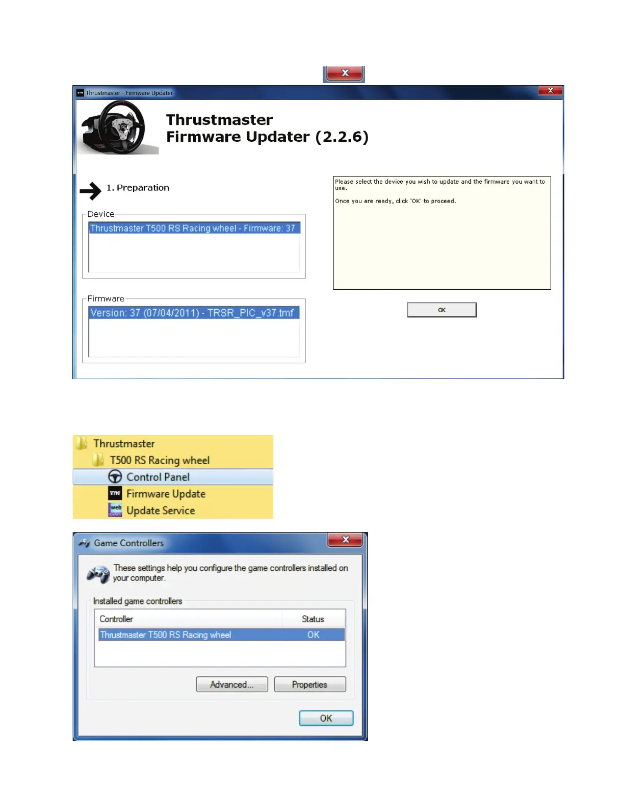 relativo Pannello di Controllo (Start > Tutti i programmi > Thrustmaster > T500 RS