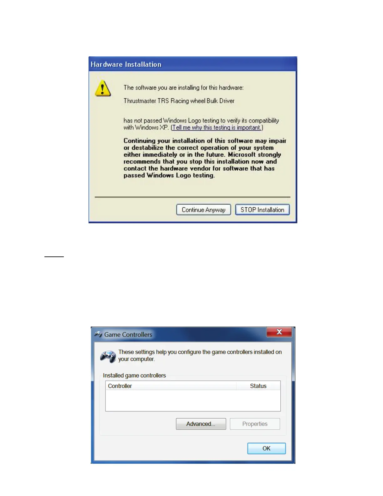 - El volante de carreras no es detectado por el Panel de control: esto es normal.