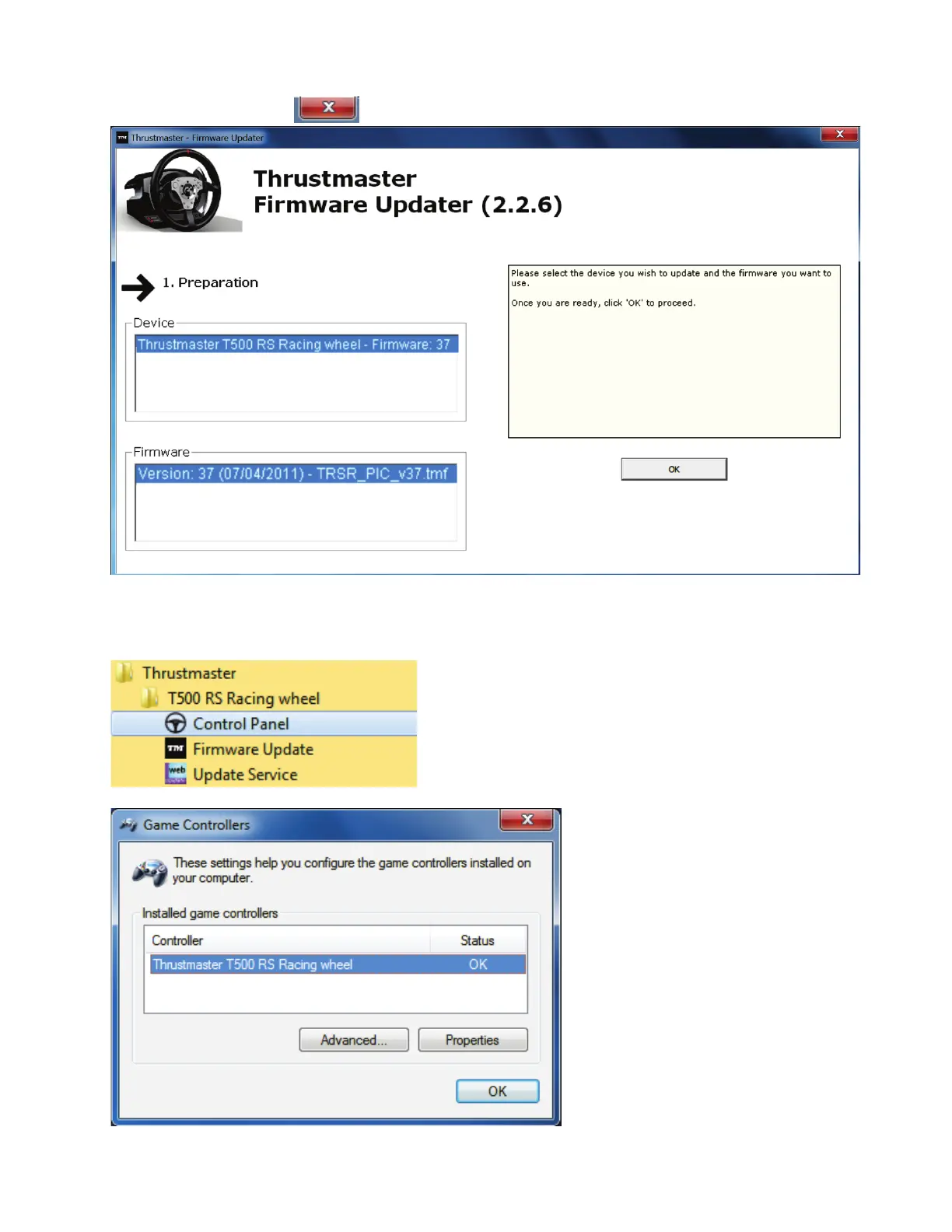 se o volante funciona correctamente (Iniciar > Todos os Programas > Thrustmaster >