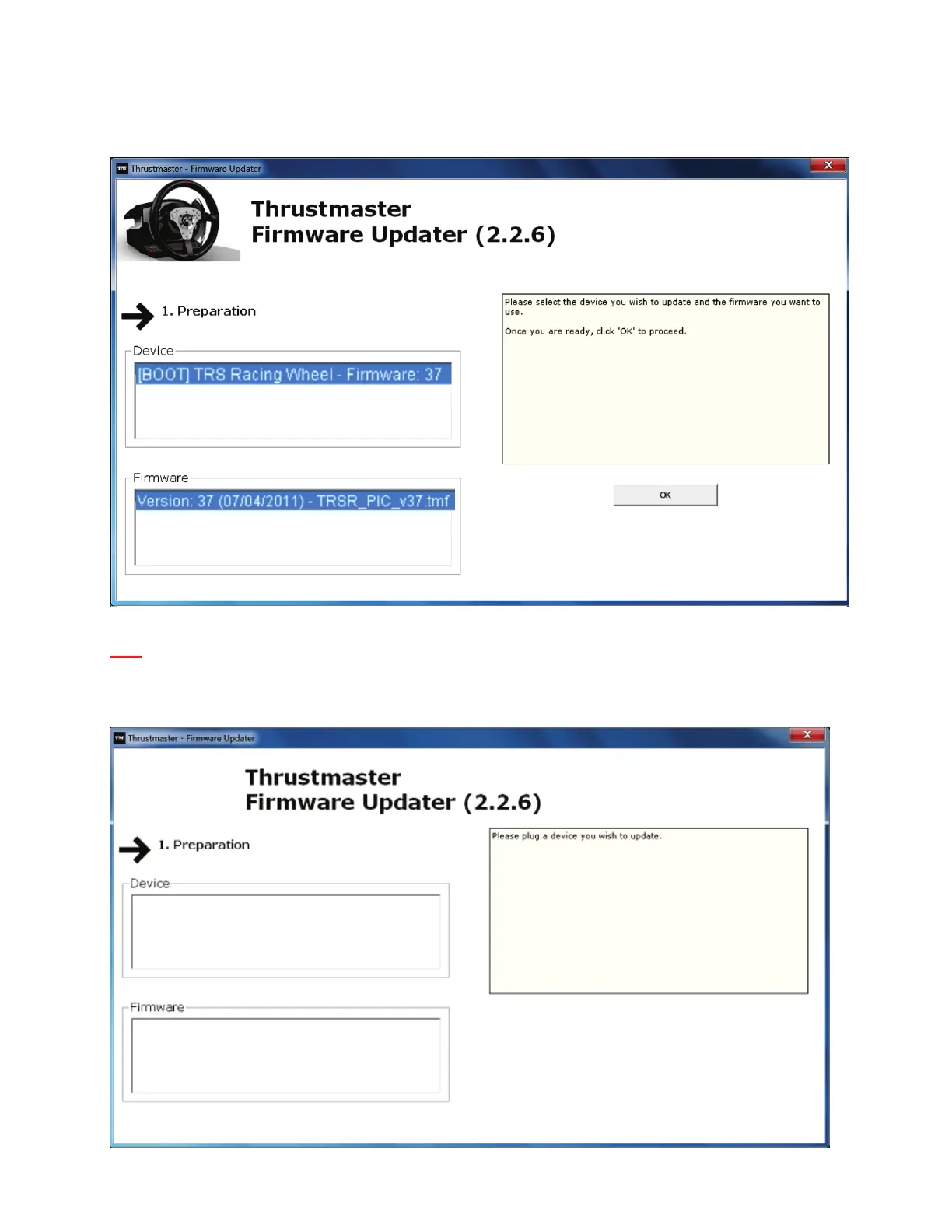 5) Thrustmaster – Donanım Yazılımı Güncelleyici penceresi ekranda görünür.