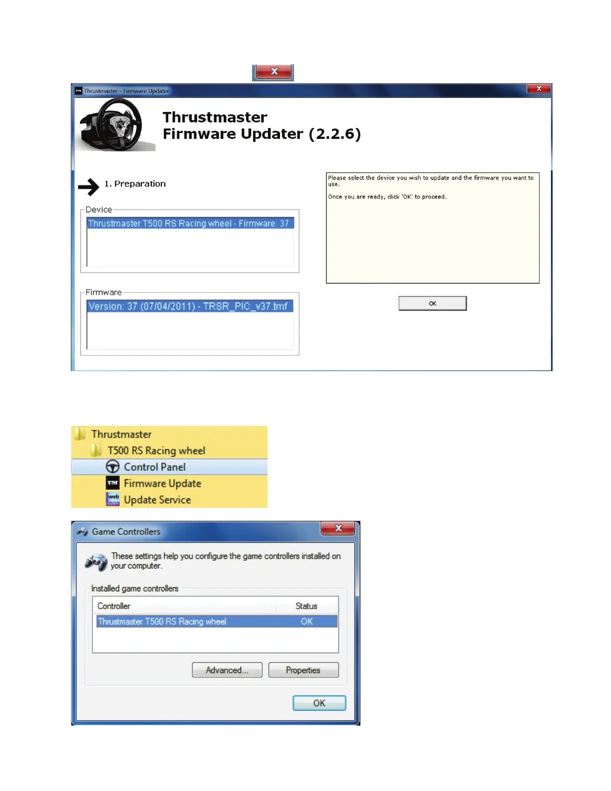 Thrustmaster > T500 RS Racing Wheel > Denetim Masası).