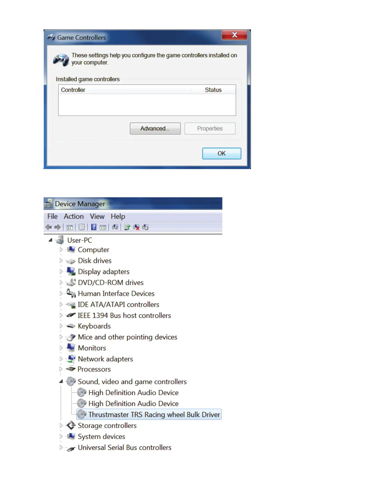 コントローラ] に、Thrustmaster TRS Racing Wheel Bulk Driver という名前で認識されている:
