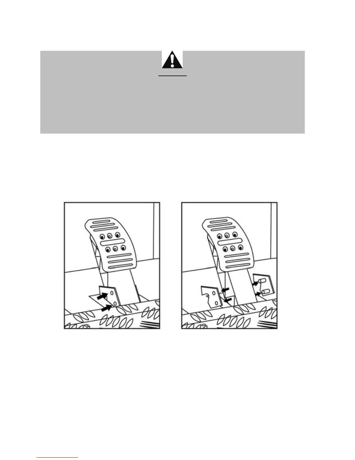 plastique transparent (qui recouvre la pédale de frein) et installer la butée métallique fournie.