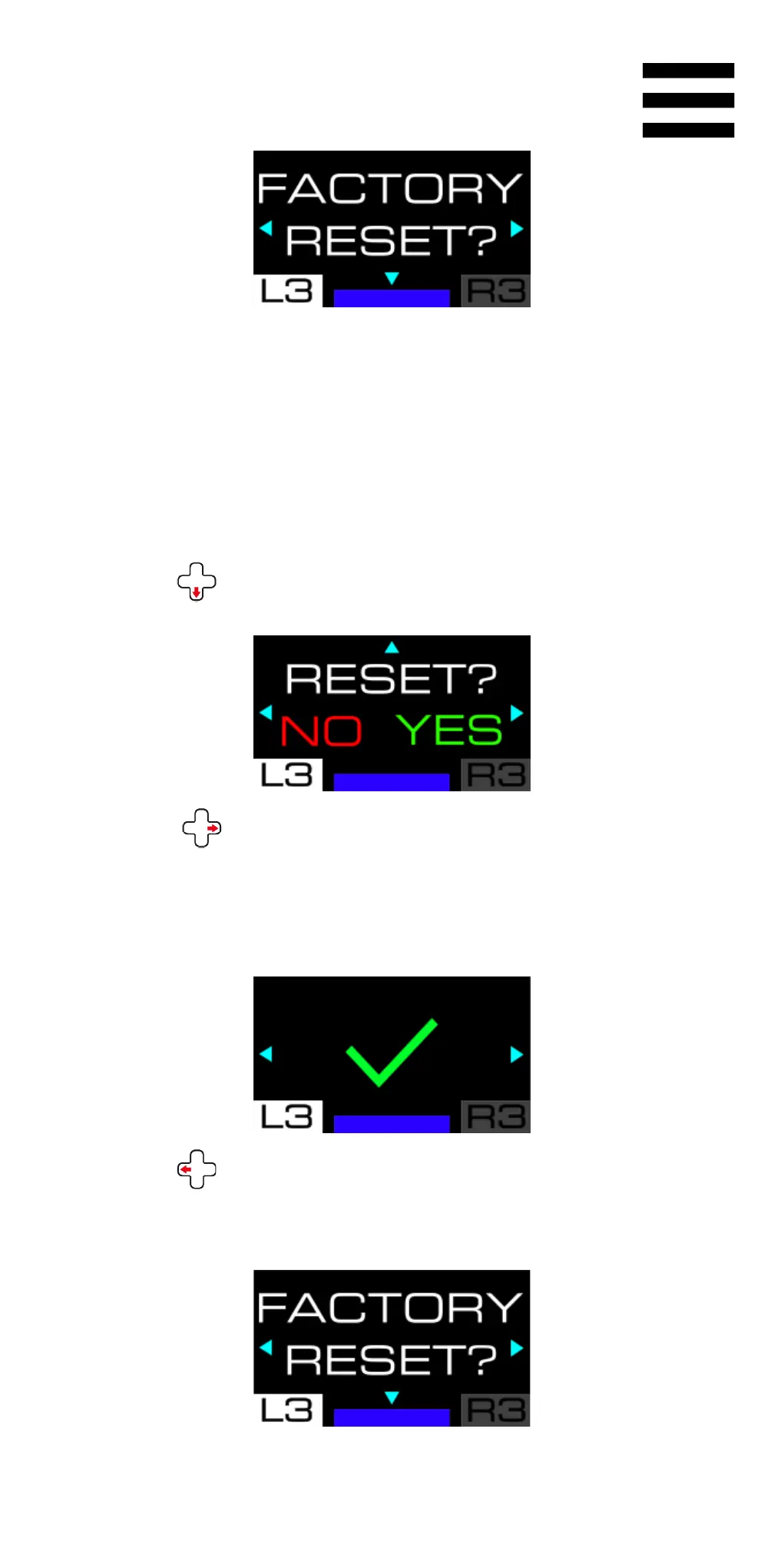 Press to refuse the reset. The following screen is