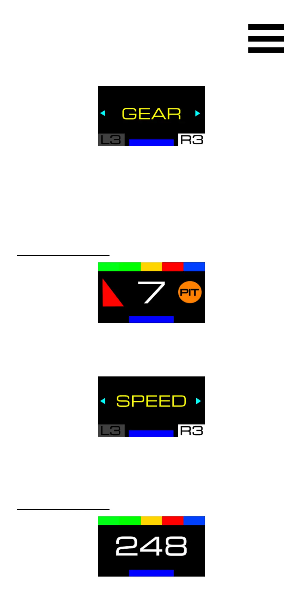 This screen lets you display the vehicle’s speed.