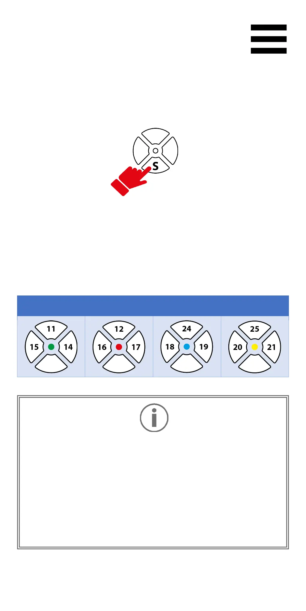 Select the active encoder by pressing the S encoder