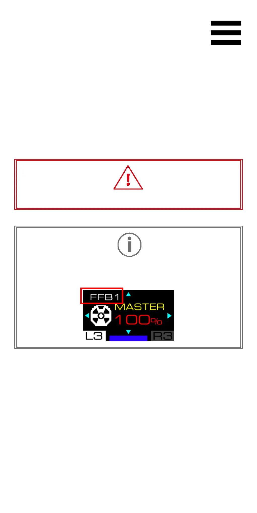 settings of the FFB 1, FFB 2 and FFB 3 profiles.