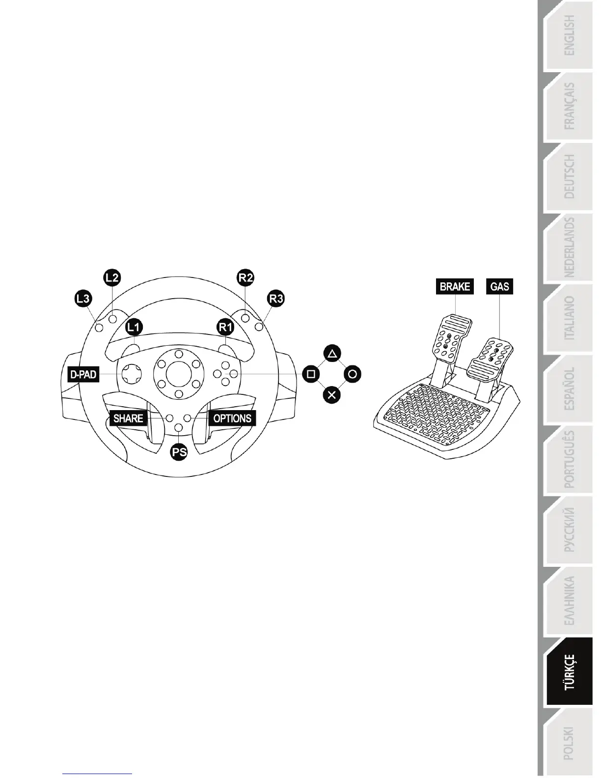 - resmi oyun pedi kumanda birimi ile direksiyon arasında geçiş yapmanızı (direksiyonu etkinleşmesi