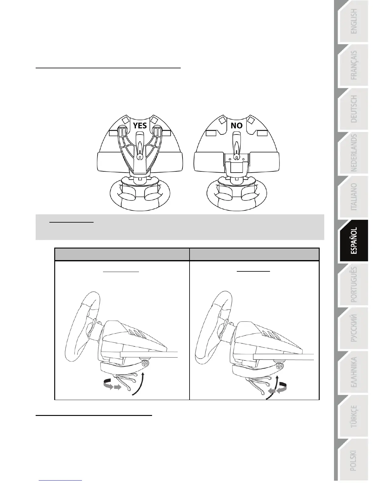 Conecta el conector macho de los pedales (8) al conector hembra del volante (9), situado en la parte
