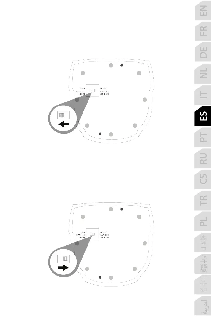interruptor selector (7) ubicado debajo de la base del joystick en LEFT HANDED — PILOT