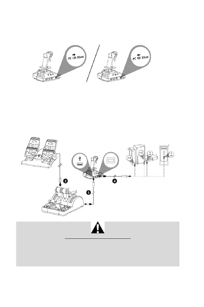 1. Pon el interruptor selector (14) ubicado en la parte posterior del joystick en la