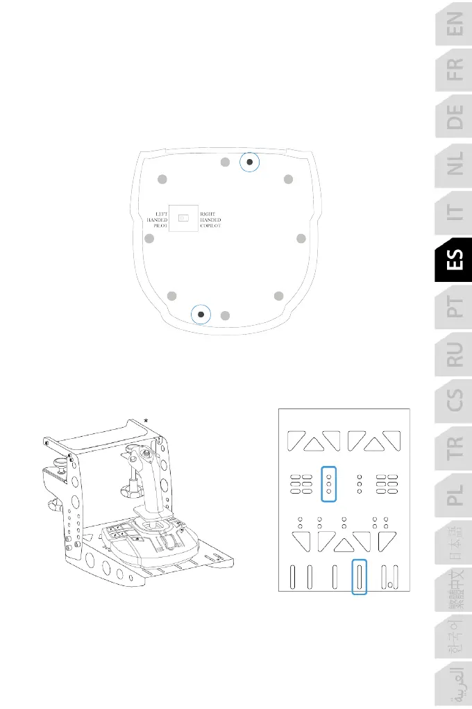 Puedes usar las dos perforaciones ubicadas en la cara inferior del TCA Sidestick X Airbus