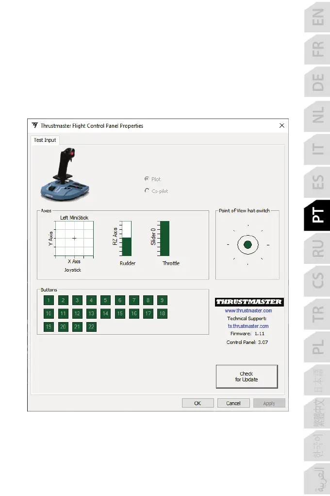 Aplicações / Thrustmaster / Painel de Controlo (no Windows® 10/11).