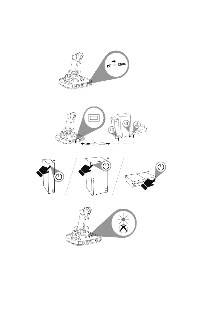 1. Nastavte přepínač (14) na zadní straně joysticku do polohy Xbox.