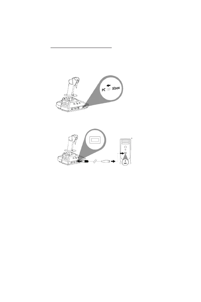 2. Nastavte přepínač (14) na zadní straně joysticku do polohy PC.