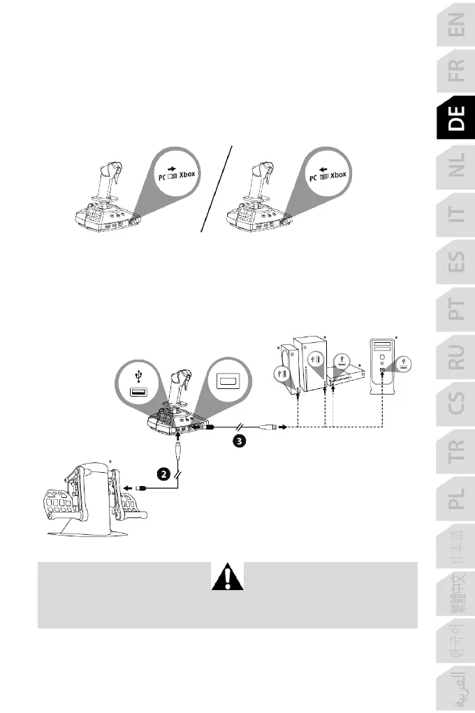 1. Stellen Sie den Wählschalter (14) auf der Rückseite des Joysticks auf die Position
