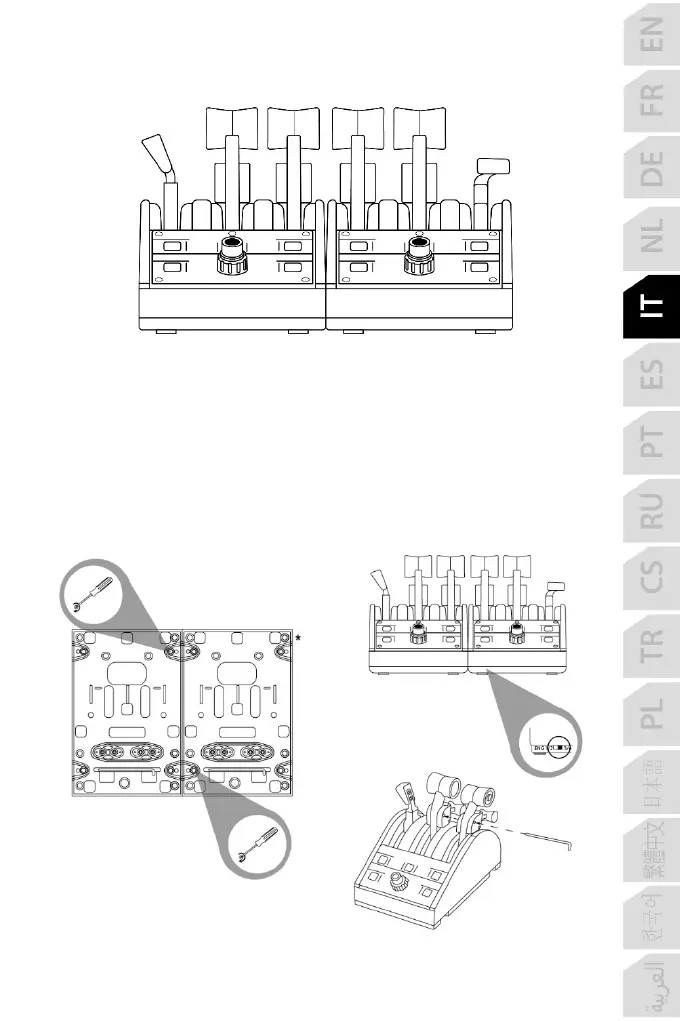 1. Ribalta entrambi i quadranti manetta e avvita i due agganci acclusi al TCA Quadrant