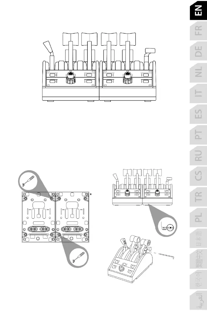 1. Turn both throttle quadrants upside down, and screw on the two attachment pieces