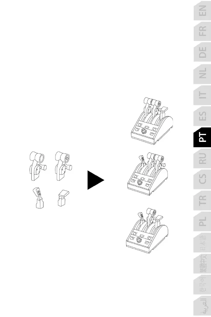 eixos com 4 tipos diferentes de alavancas. Isto permite-lhe modificar as sensações de voo