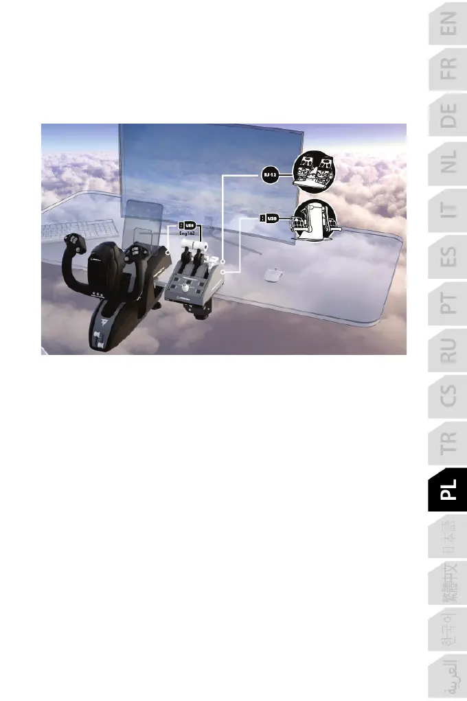 w komputerze lub konsoli albo z tyłu urządzenia TCA Yoke Boeing Edition (do nabycia