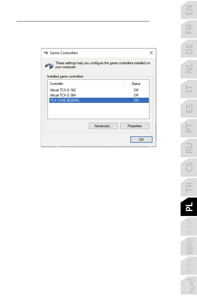 dialogowym Kontrolery gier osie układu steru kierunku są scalane z panelem
