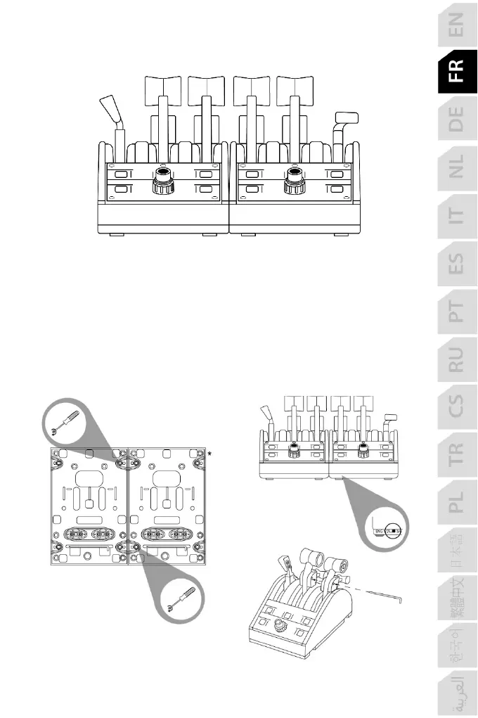 1. Retournez les blocs manette et vissez les deux pièces de fixation fournies avec