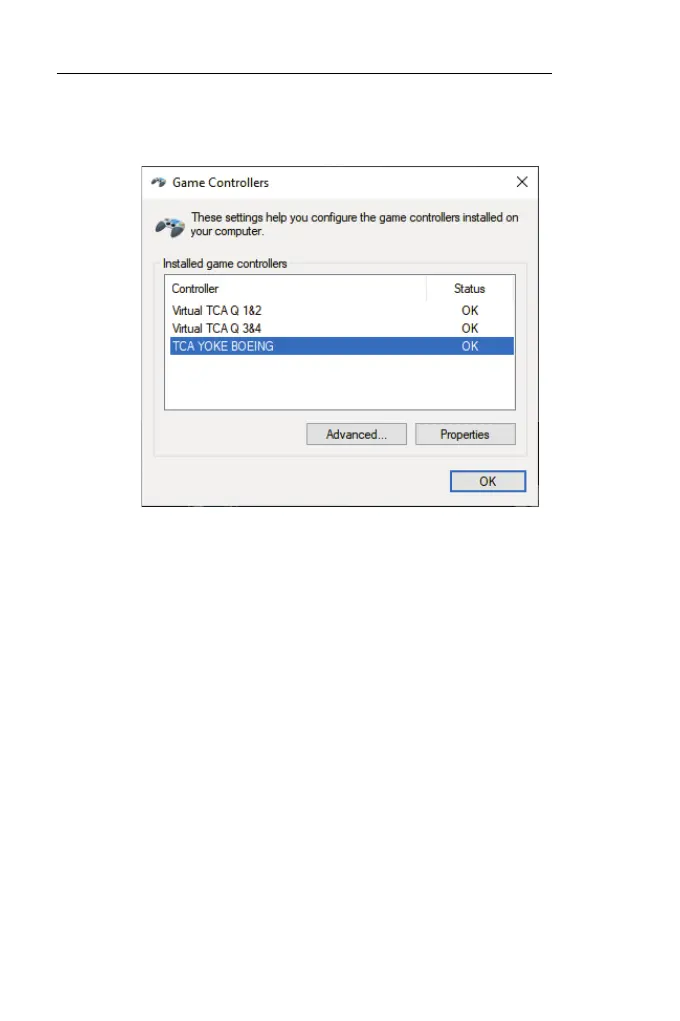 dialógovom okne TCA Quadrant Boeing Edition Game Controllers.
