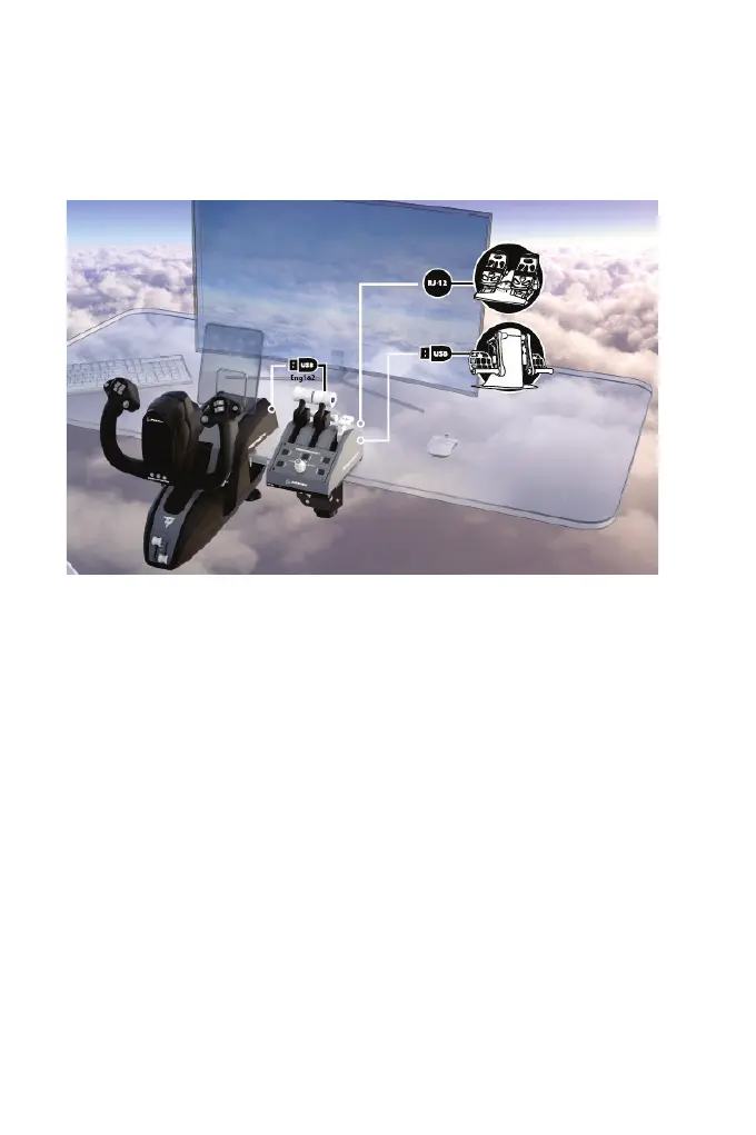 USB portjához vagy a TCA Yoke Boeing Edition (külön kapható) hátuljához.