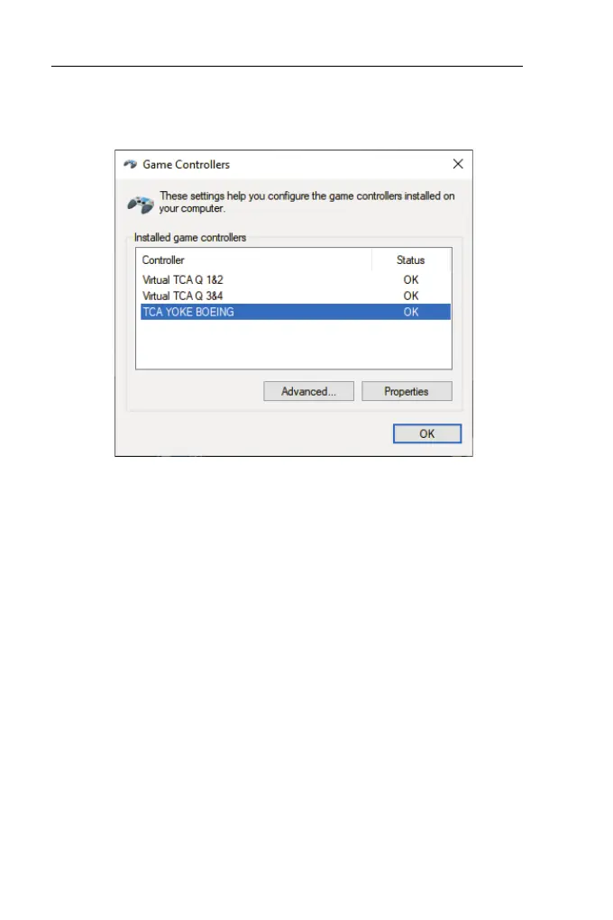 TCA Q 1&2) a Játékvezérlők párbeszédpanelben.