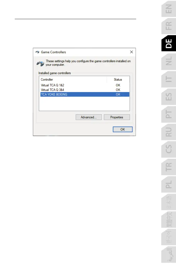 Rudersystems im Dialogfeld Gamecontroller der TCA Quadrant Boeing Edition