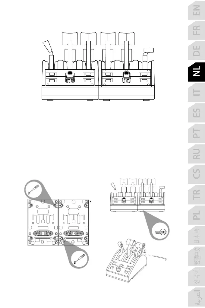 1. Zet beide TCA Quadrant Boeing Edition-throttle-quadrants op hun kop. Monteer de twee