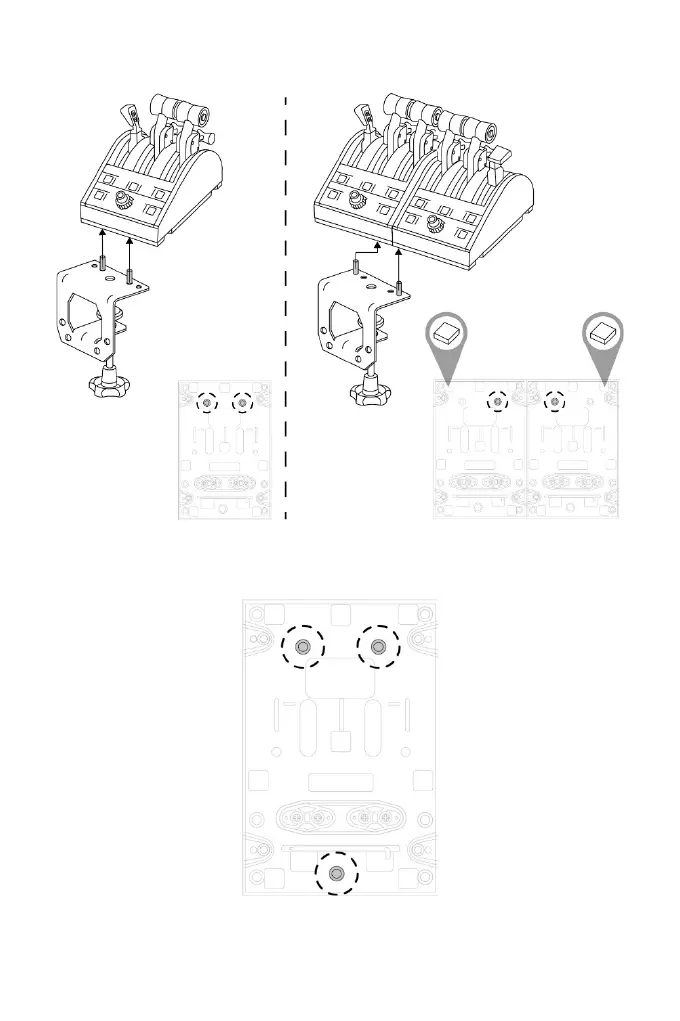 U kunt de drie openingen onderop de TCA Quadrant Boeing Edition gebruiken om de