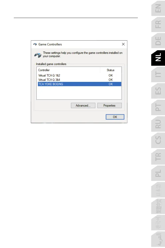 TCA Q 1&2) in het dialoogvenster Spelbesturingen. Voor een goede werking moet de