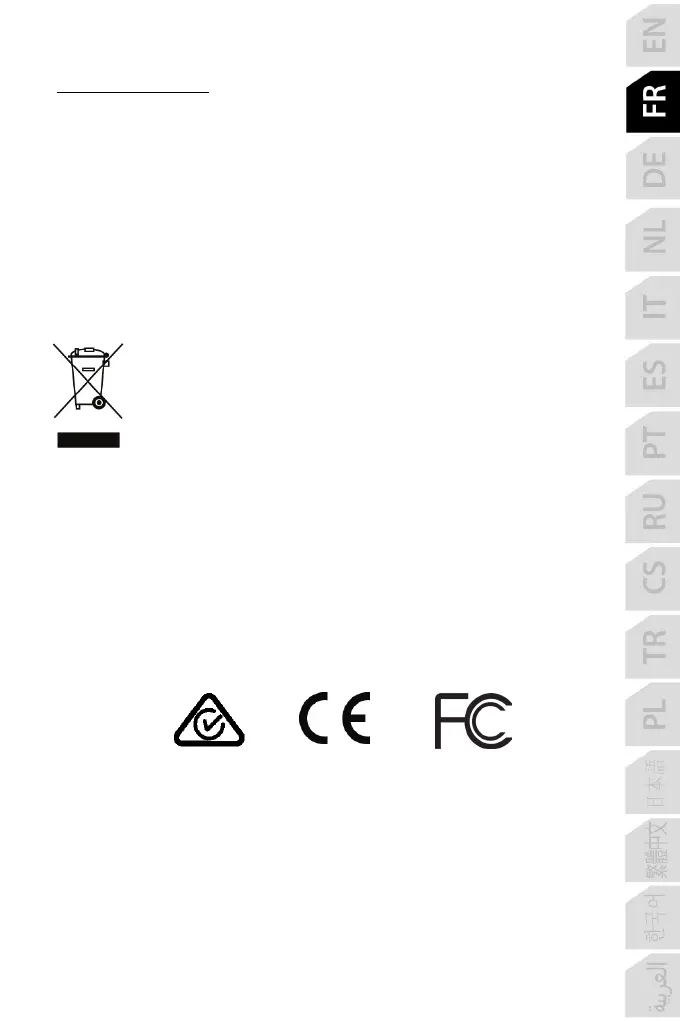 Dans l’Union Européenne : En fin de vie, ce produit ne doit pas être éliminé avec les